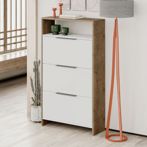Scarpiera Kaju 3 ante a ribalta bianco e struttura noce