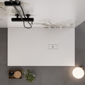 Home -> Piatto doccia in marmo resina bianco effetto cemento SERIE MYKONOS Dimensioni 70x90 cm