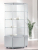 Vetrina angolare con profili in alluminio – cristalli temperati – no. 1 anta battente con serratura – no. 3 ripiani regolabili in altezza – top legno – mobile legno h 43 cm con ante battenti e serratura – su ruote. PESO 130 kg DIMENSIONI 73 x 73 x 183 cm