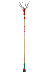 La testa dell'apparecchio è localizzata alla fine dell'asta telescopica per permettere ai denti di raggiungere i rami dell'albero per effettuare la raccolta del frutto.