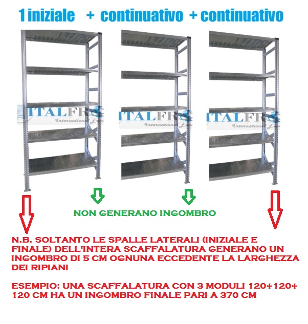 MODULO CONTINUATIVO scaffalatura industriale zincata componibile Lunghezza 120 cm , H 300 cm , prof. 50 cm , con 5 ripiani